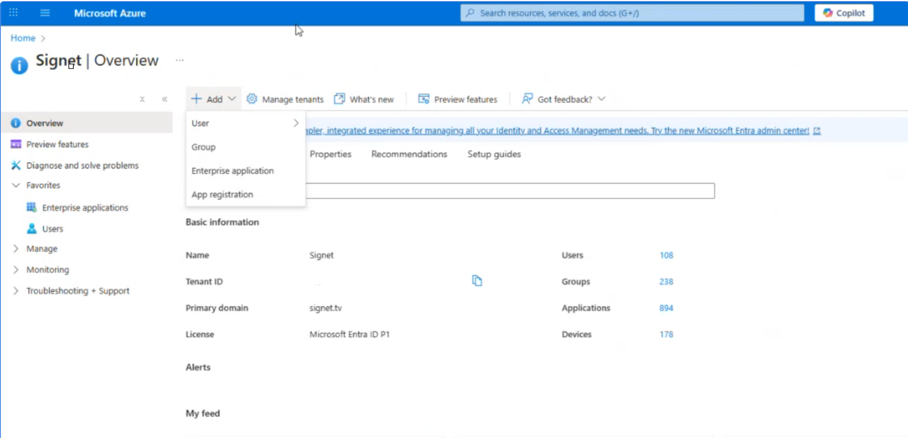 - Navigate to: Azure Portal → Microsoft Entra ID → App registrations → New registration
