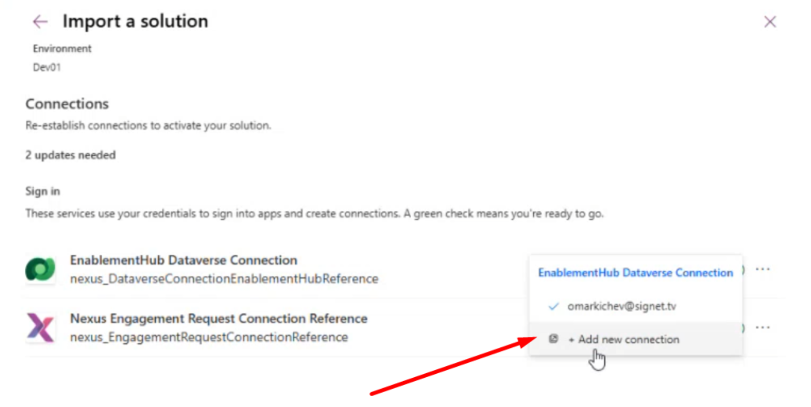 - After importing the connector, click on "Import solution" again to import the “Nexus Enablement Hub”