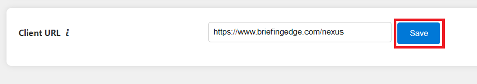 - Enter the Nexus Engagement Hub link to “Client URL” field which will be used to redirect MSD users after clicking on “Submit an Engagement” button from the Request Completing page.
